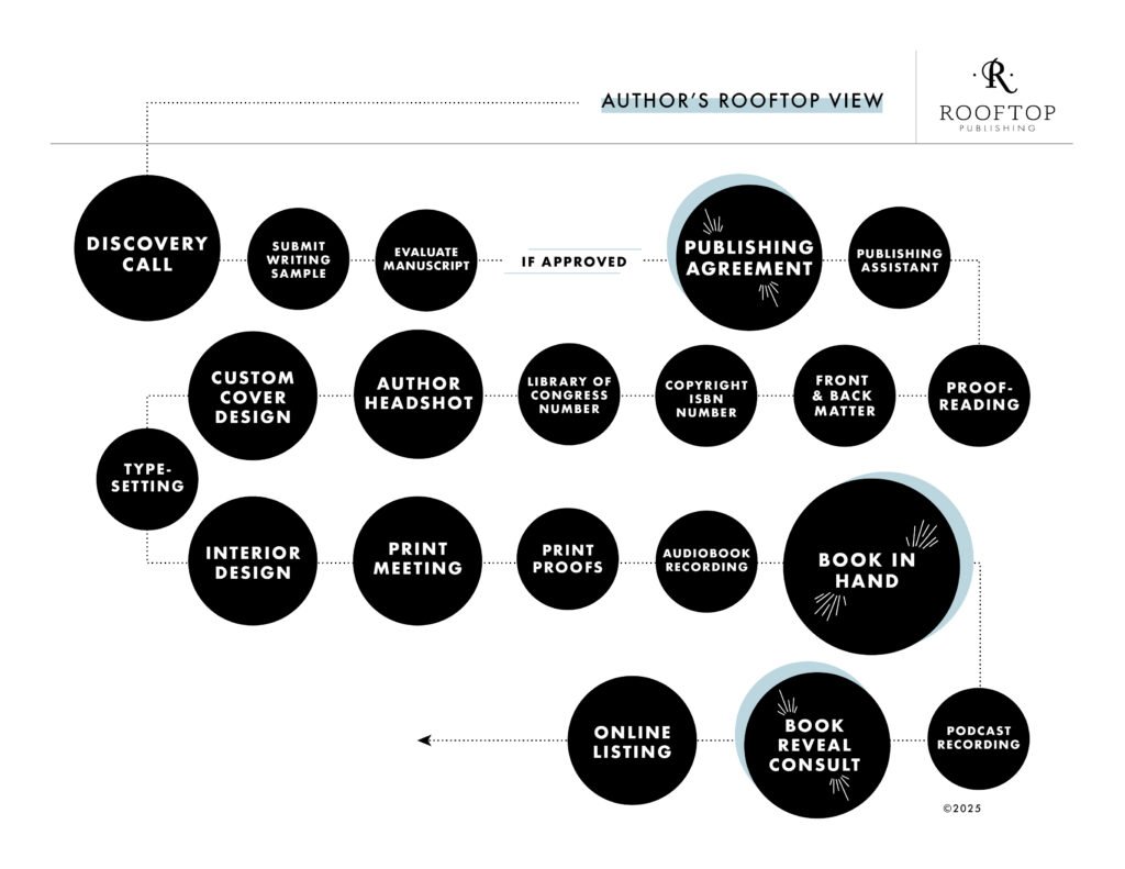 Our Processes: A rooftop view of the author’s journey from initial Discovery Call to having your book in hand.